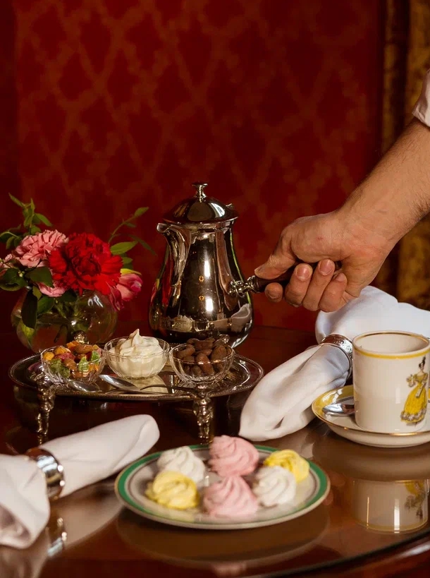 Образец элегантности и стиля, красивая традиция, очаровавшая европейскую знать ещё в XVII столетии. Шоколад признан афродизиаком, он усиливает притяжение противоположного пола и настраивает на романтический лад. Церемония – прекрасное сопровождение для тёплой, душевной встречи. Шоколад – это драгоценность. Так думали древние индейцы, которые открыли его для мира, так думаем и мы. Для двоих мы сервируем горячий шоколад из отборных какао-бобов в серебряном шоколаднике, подаём воду в резных бокалах, а сам горячий шоколад – в красивых парах сервиза «Парижская мода» от историка моды и стиля Александра Васильева. Сладости и взбитые сливки – в специальных соусниках. Гости услышат занимательные факты из истории этого удивительного напитка.